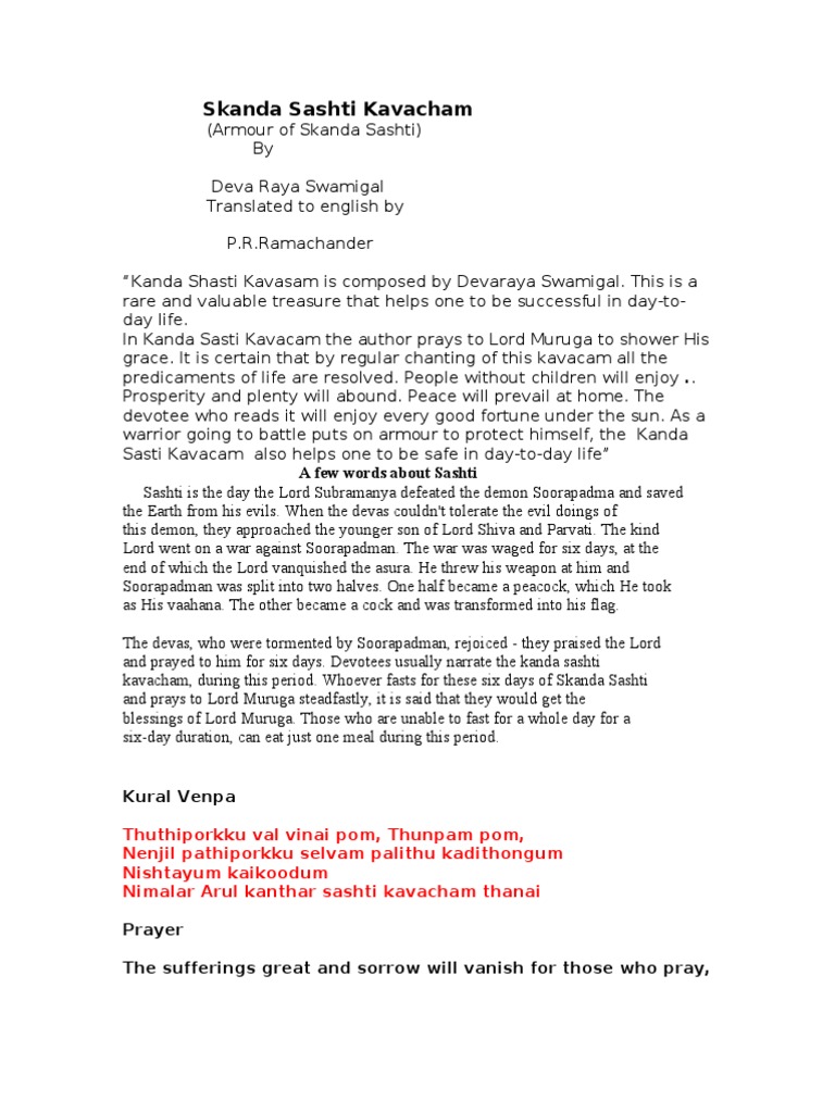 Kandha Sasti Kavasam In Tamil Download - In kanda sasti kavasam the author prays to lord muruga to shower his grace.